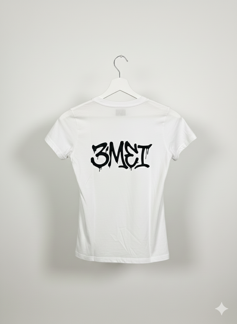 maglietta in cotone bianca con stampa in vinile nera